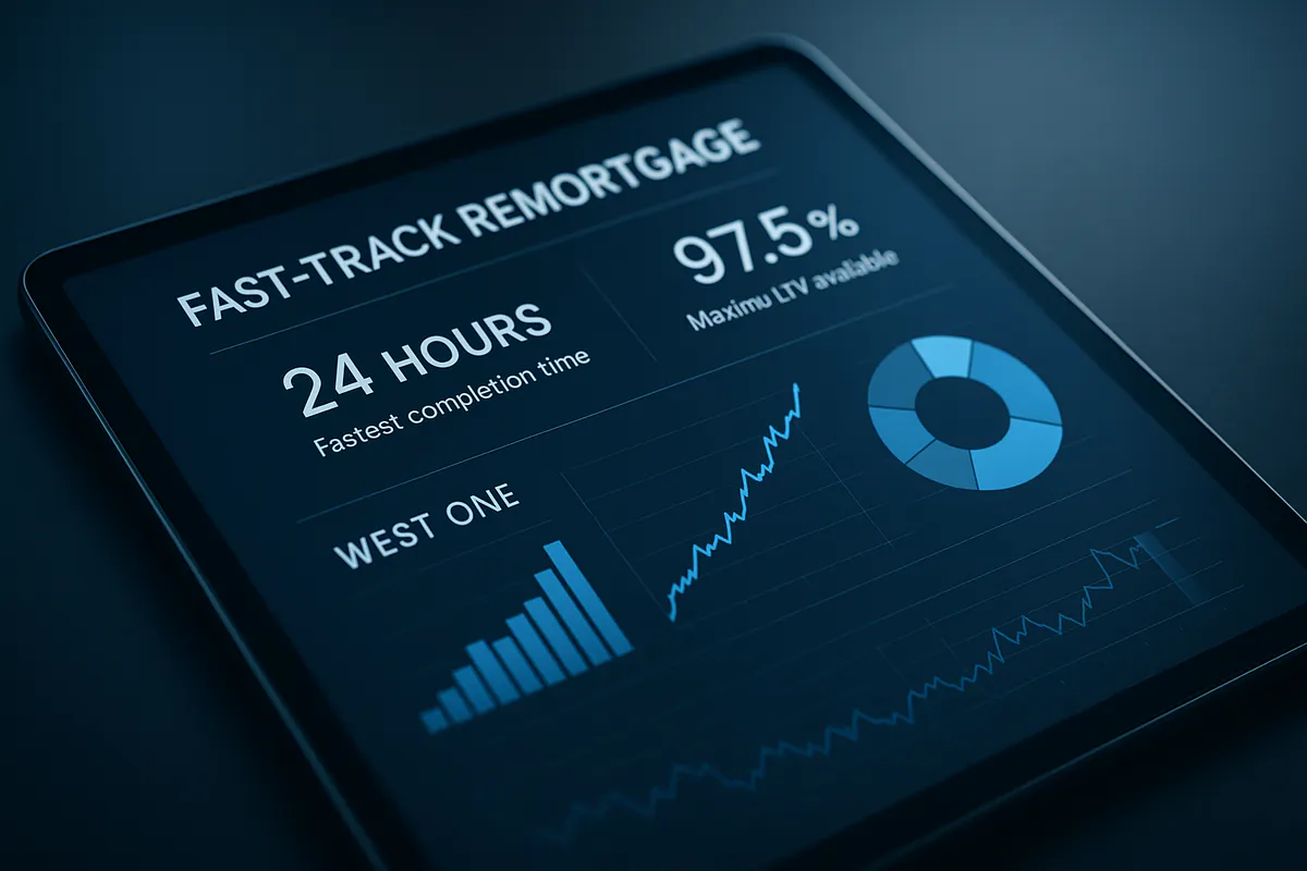 West One fast-track remortgage completes in as little as 24 hours, up to 97.5% LTV and £750k, with AVMs and fast legal for hassle-free refinancing.
